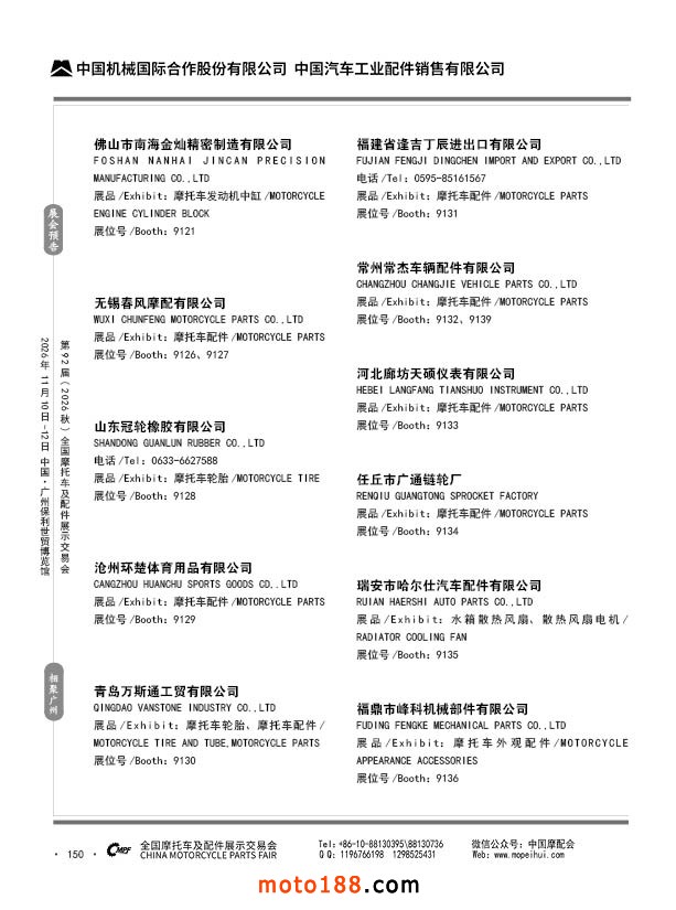 内150 第91届(2026春)全国摩托车及配件展示交易会-福州站参展企业信息