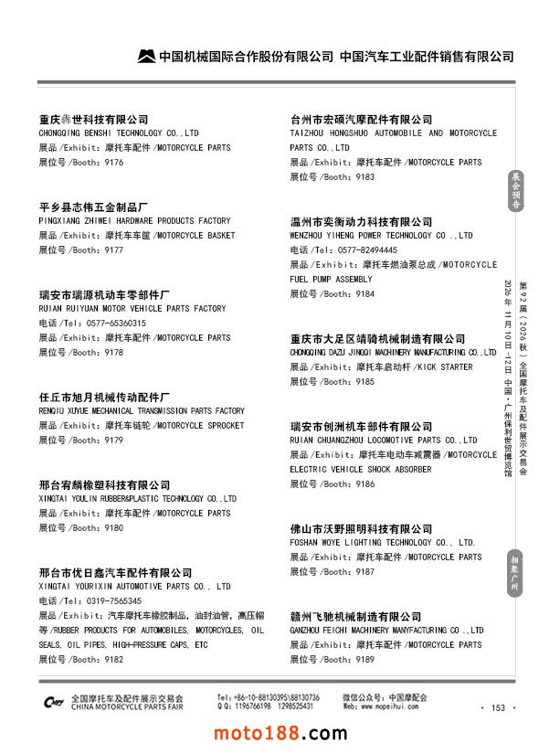 内153 第91届(2026春)全国摩托车及配件展示交易会-福州站参展企业信息
