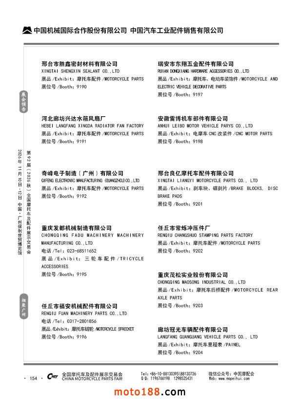 内154 第91届(2026春)全国摩托车及配件展示交易会-福州站参展企业信息