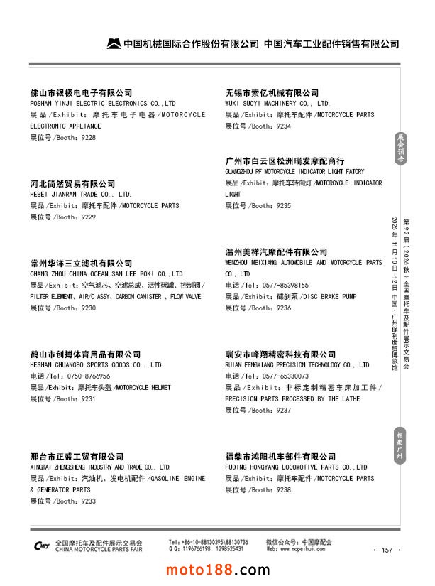 内157 第91届(2026春)全国摩托车及配件展示交易会-福州站参展企业信息