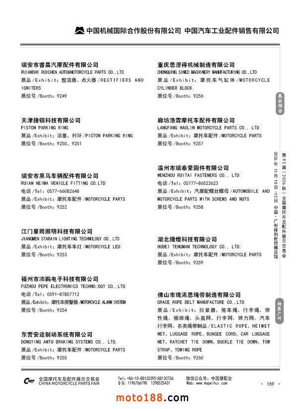 内159 第91届(2026春)全国摩托车及配件展示交易会-福州站参展企业信息