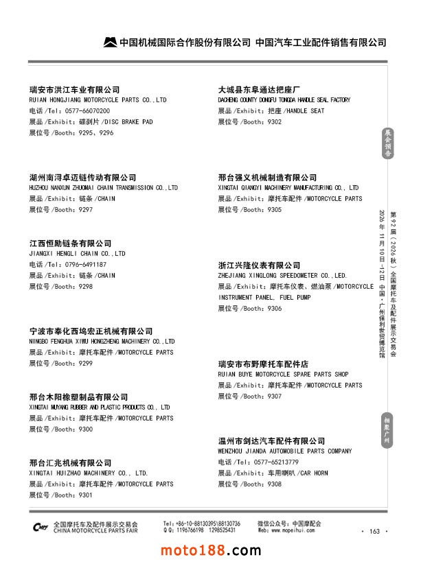 内163 第91届(2026春)全国摩托车及配件展示交易会-福州站参展企业信息