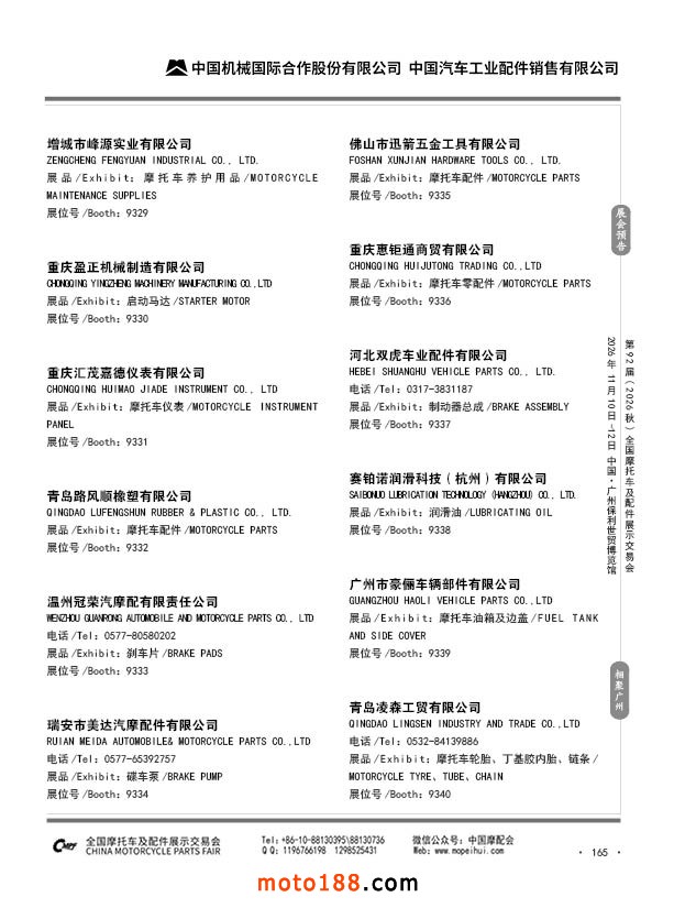 内165 第91届(2026春)全国摩托车及配件展示交易会-福州站参展企业信息