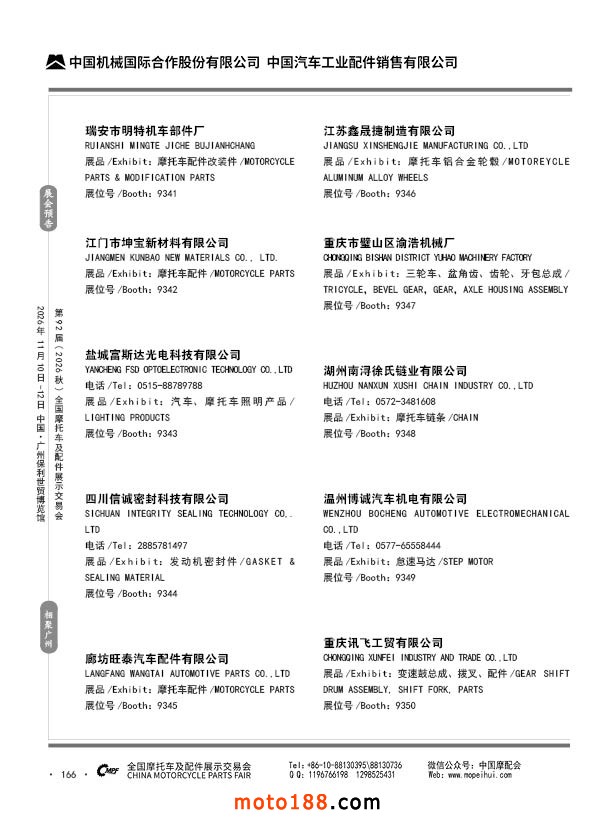 内166 第91届(2026春)全国摩托车及配件展示交易会-福州站参展企业信息