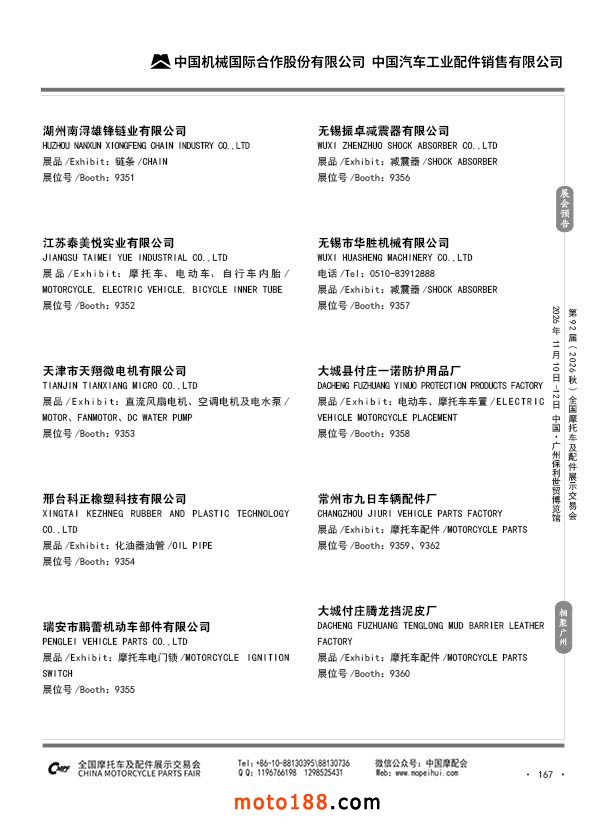 内167 第91届(2026春)全国摩托车及配件展示交易会-福州站参展企业信息