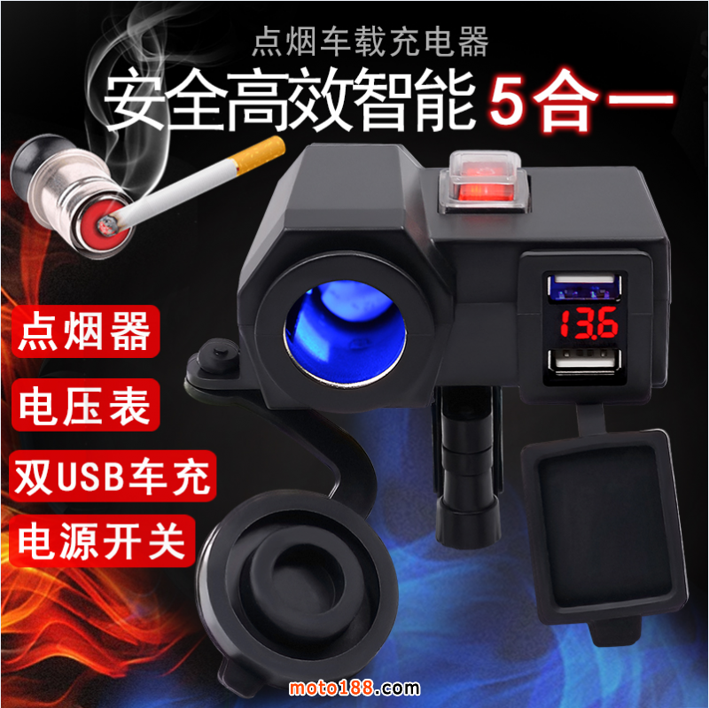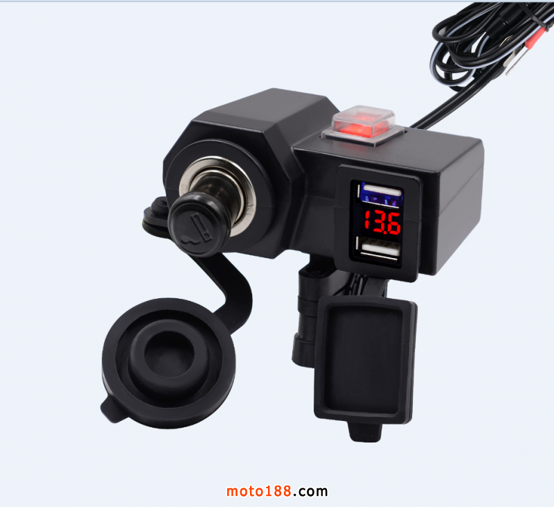 新款摩托车防水点烟器USB电压表车充,输入电压12V,输出电压5V 4.2A,此款产品分为可点烟款和不可点烟款,带有独立开关设计,可以控制产品的使用状态。此款新品大量供货,欢迎各位摩托车爱好者前来咨询。了解产品详情请登录:https://item.taobao.com/item.htm?spm=686.1000925.0.0.4a155084YCEBsw&id=557757824718