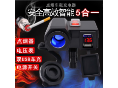 供应新款摩托车防水点烟器USB电压表车充